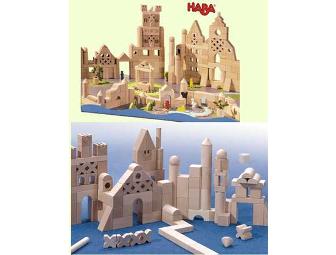 Building blocs are a great way for kids to bond with family and friends because everyone can join in on the fun of building. HABA's 102 Piece Extra Large Starter Set includes squares, rectangles, cylinders, triangles, and arches for your young architect to build castles, towers, fortresses and more. HABA's Building Blocks are made from solid, untreated beech wood.