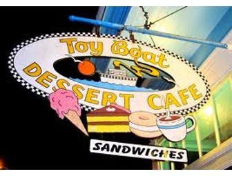 Desserts may be their specialty, but Toy Boat Dessert Cafe has something for everyone! Open for Breakfast, Lunch and Dinner, Toy Boat can wake you up, fill you up, and satisfy your sweet tooth. These six gift cards give you a family sampler: 2 cups of coffee or espresso, two kid's ice cream cup or cones, and two horse rides on butterscotch. Check out the full menu athttp://sanfrancisco.menupages.com/restaurants/toy-boat-dessert-cafe/menu. Located at Clement and 5th.