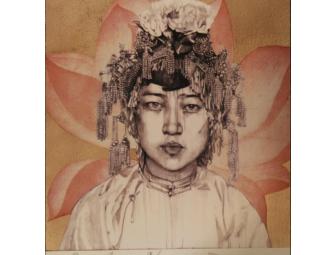 Stunning signed painting by Hung Liu. 5-1/8" x 5-3/8". 2004. Signed 9/192. Painting is sold unframed.