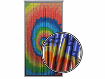 This Spiral Tie Dye Wooden Door Beads feature 90 strands of beautiful wooden beads painted in a traditional tie dye pattern. Add style and privacy to any space in your home or office. Each gateway curtain measures 3' x 7' and will fit most standard doorways and can be easily custom fit to fit your door way. Spiral Tie Dye Wooden Door Beads gives you the ability to add privacy to any room with or without a door. Light weight durable construction makes mounting this curtain simple; fasten to 2 nails and you are in business. No stud hanging required.