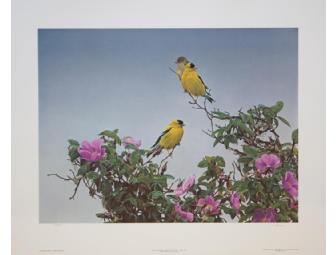 Gold on the Rose - American Goldfinch Print by Terry Isaac