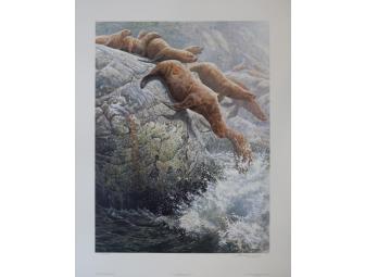The Plunge - Norther Sea Lions Print by John Seere-Lester