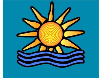 T-shirt with classic labyrinth in the center of the setting (or rising) sun.