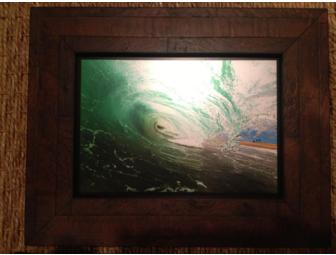 5 x 7 metallic print, face mounted to matte laminate, and framed in a natural rustic wood frame. The matte laminate protects the photography from both fingerprints and uv rays, thus eliminating the need for glass that gives off the unwanted glare. When the laminate is paired with the Metallic photo paper the results is a beautifiul metallic luster that helps captivate the raw energy of the ocean.