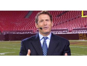 Join Pro Football Hall of Famer and former San Francisco 49er quarterback Steve Young at an exciting Monday Night Football game next fall.  You and your guest will get the inside scoop on the Monday Night Football post-game editions of ESPN Sports Center.  You will get special access on the field…and “feel like a sportscaster for a night.”  Steve will also throw in a signed football as a great memento. Don’t miss out on this once in lifetime experience. Steve will be sure you have a great time.