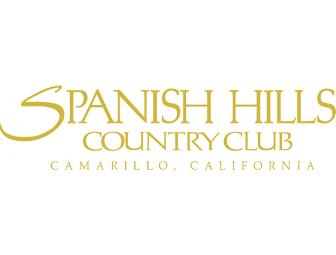 Gift Certificate for a Round of Golf for Four (4) at Spanish Hills Country Club in Camarillo, California. Guest fees, cart fees and practive facilities are included. Guests will be required to adhere to the club's dress code and golf course regulations.