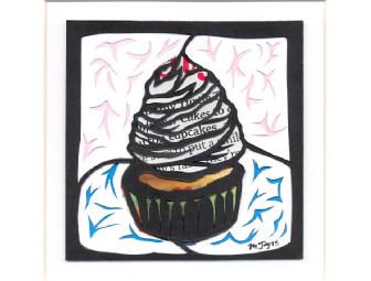 A paper cutting inspired by and infused with pieces from a Betty Crocker magazine the artist found in her sister's recycle bin. Perfect for Recycled Runway!