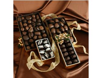Aglamesis Brothers’ most requested chocolates are combined to create a Tower of Favorites. This great Cincinnati confectioner's Deluxe Assortment makes an ideal foundation providing a grand variety of flavors and textures. Delicious, chewy pecandes create the next level, followed by Aglamesis' signature Dark Opera Creams. Velvety Dark Chocolate Non-pareils finish as the perfect pinnacle.