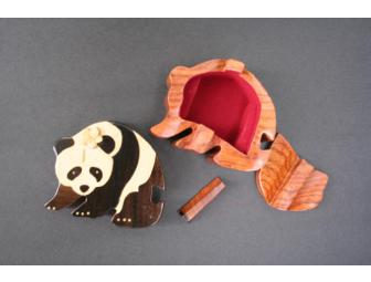 Unique wooden Panda puzzle box.  Great for storing keepsakes and tiny treasures.