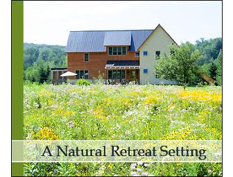 On site, owner built, outdoor Labyrinth, plus walking trails, bikes/snowshoes, massage & spa.