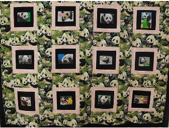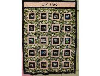 This beautiful quilt of Thailand's panda, Lin Ping, is lovingly handmade.  The extraordinarily colorful photographs are courtesy of her home, Chiang Mai Zoo in Thailand.  There are 20 photos that feature this sweet panda cub from birth to approx. 18 months of age.
