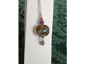 - This elegant necklace was made with hand-blown art glass beads produced in Hopkinton by local artist Lorelei Lotvin.