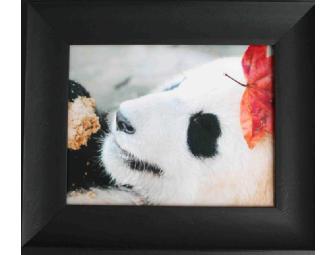 Beautiful picture taken by the Panda Club at bifengxia. Gorgeous panda enjoying panda bread in the fall. Framed in an 8 x 10 black frame.