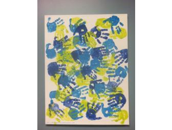 18x24" Canvas "Handprint" style acrylic painting with glazed finish done by all 2 year old classes at CCK.