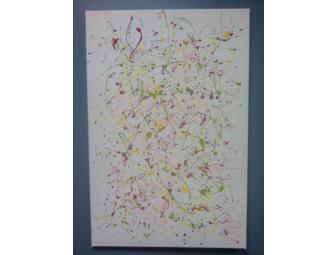 24x36" Canvas "splatter paint" style acrylic painting with glazed finish done by all 2nd Grade Sunday School classes at Christ Church.