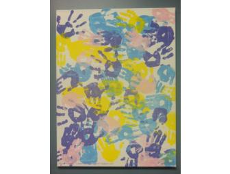 18x24" Canvas "Handprint" style acrylic painting with glazed finish done by all 2 and 3 year old Sunday School classes at Christ Church.