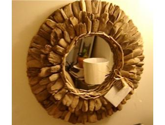 A handcrafted 32" Dia driftwood mirror from "And Beige". Also Includes a 15% off certicate to the store.