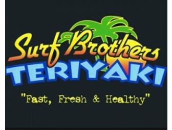 $20 to Surf Brothers Teriyaki - Encinitas, and (1)- bottle of their delicious teriyaki sauce and individual sauces.
