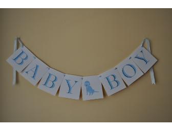 Welcome the newest arrival with a BabyGirl or BabyBoy banner with an adorable doggy image in the center!