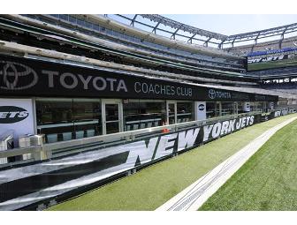 Cheer on the Jets in absolute luxury with these 4 tickets to any game in the 2013-2014 season! The Coaches Club boasts a 20,000 square foot bar and lounge area, where all of your food and non-alcoholic drinks will be on the house. It also has a private, on-field deck where you can step out and stand just five yards behind the home team's bench. Parking is included with these tickets.