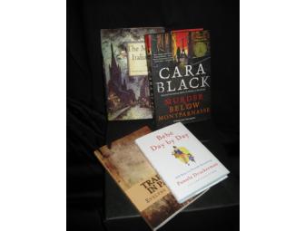 This collection features mostly signed, recently released books. First, world renowned author and journalist Pamela Druckerman offers this signed copy of her latest book, BEBE DAY BY DAY, released in February 2013. Cara Black offers MURDER BELOW MONTPARNASSE (also signed). Evelyne Holingue offers TRAPPED IN PARIS, and Barbara Pope offers a signed copy of her new book, THE MISSING ITALIAN GIRL, which won Oprah recognition. Druckerman and Black presented a few weeks ago at the Alliance; Pope will present in June.