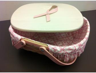 Longaberger Horizon of Hope Pink Ribbon Basket with over-the-edge liner, plastic protector (dishwasher safe!), and Wood Crafts lid.