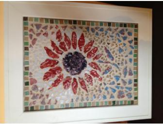 and design to a tile of clay. The tile was then glazed and framed and is ready