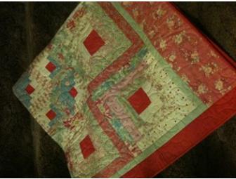 Handmade quilted throw-54x60-in colors of peach, yellow & turquoise.