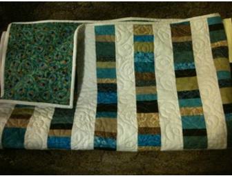 Beautiful handmade quilt in turquoise and taupe--70x58