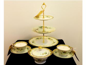 This set from Good Karma Candles includes soy candles in 2 teacups and the sugar bowl, accompanied by a tiered server perfect for sweets for afternoon tea. Candles are scented with essential oils and contain no dyes.