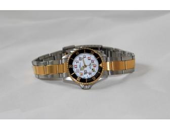 Del Mar Ladies' nautical-style watch, black with gold hour ring, silver and gold band. Water resistant, quartz movement. A beauty! Del Mar Watches is a leading brand in the boating industry.