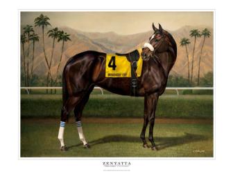"Zenyatta Breeders Cup Gold"...Gold stamped limited edition and signed by Team Zenyatta , 25" x 31" framed poster. Donated by Jaime Corum.