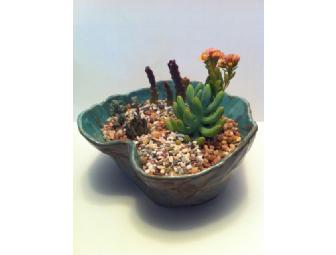 Hand formed, one of a kind, glazed ceramics, succulents, soil, sand