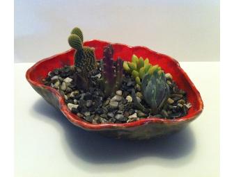 Hand formed, one of a kind, glazed ceramics, succulents, soil, sand
