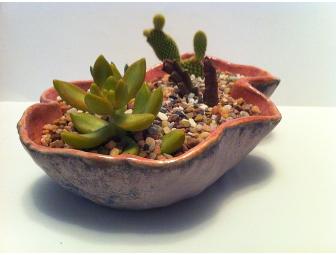 Hand formed, one of a kind, glazed ceramics, succulents, soil, sand