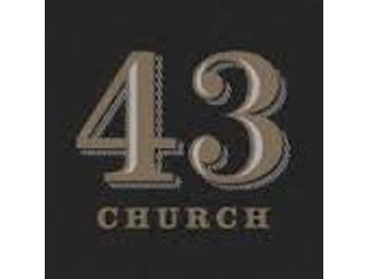43 Church offers contemporary American Bistro style fare in a casual yet elegant setting. Come try menu items such as Spicy Acorn Squash Bisque, Pork Osso Bucco and Pan Seared Parsnip Gnocchi just to name a few.