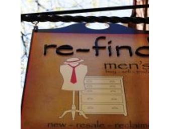 Shelley Matthews, owner of re-find men hand selects new and used clothing for her store and is confident she has a selection that will appeal to any man - from the steampunk to a dad or even a guy who works at a tattoo shop.