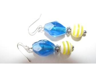 Earrings #1 - pair of yellow/blue & silver drop pendant earrings