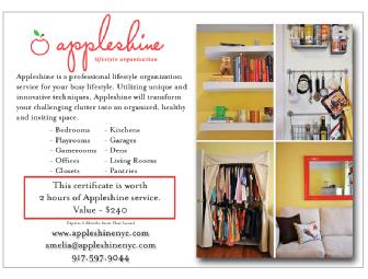 Appleshine is a professional organization service for your busy lifestyle. Utilizing unique and innovative techniques, Appleshine will transform your challenging clutter into an organized, healthy and inviting space.