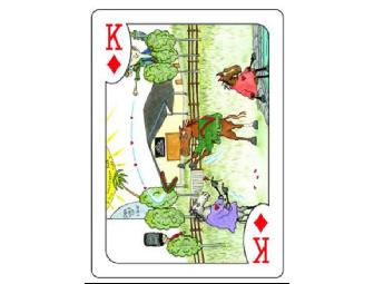 A deck of 54 casino quality playing cards. Each card face has a different Funnies drawn by MEL, ea deck comes with a hard plastic case.