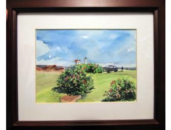 Nubble Light framed watercolor by Helen Rose Hennessy