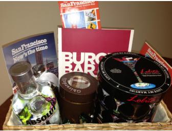 Enjoy part of San Francisco in the comfort of your own home. This basket includes world famous Ghiradelli Chocolate, Absolut Vodka and handpainted Lolita martini glass San Francisco style.