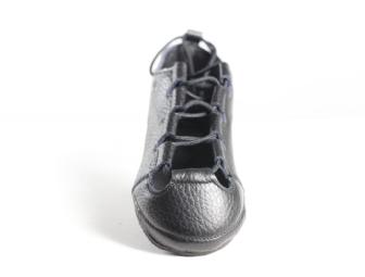 Our dance pumps feature a full shock absorbing ‘soft gel’ cushioned insole. The ‘soft gel’ cushion is a revolutionary shock material that still allows the dancer to feel the floor but adds the essential protection and desired comfort that you expect from a performance sports pump. Perforations throughout the gel layer increase the breathability and help with wicking. There is a layer of shock dispersing Noene surrounding the actual toe area, giving protection to the area that requires it the most. The pumps have a quality grained soft leather finish and have been made using an arch last to accentuate the point whilst giving arch hugging profile support. The pump has a split suede sole finish for maximum flexibility. There are extra eyelets at the ankle for better support and fit around the heel.