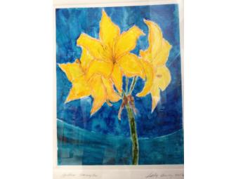 "Mellow Amaryllis" Watercolor Monoprint by Sally Brody