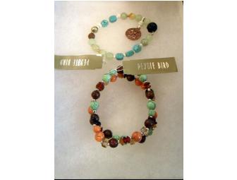 Blue, Brown, and Peach Bracelet Duo by Peyote Bird