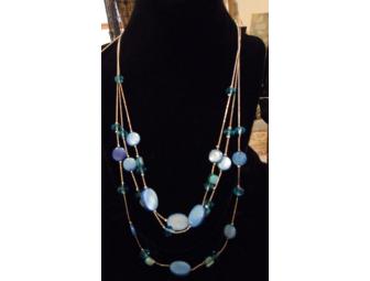 This beautiful Kenneth Cole 24" necklace features 3 strands of crystals and blue mother of pearl.