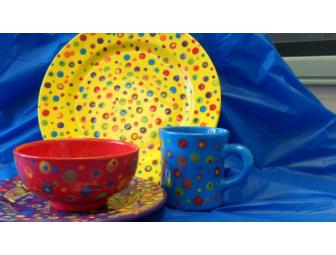 This beautiful and festive handpainted, dishwasher safe ceramic dinnerware set could spice up your table! These 4 place settings are in vibrant colors with a polka dot design. Brighten up your table today!