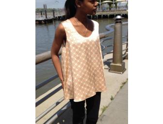 This demure, patterned tank top is a perfect pairing for a summer suit.