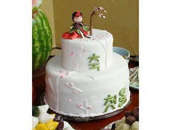 one "themed" double tiered fondant cake (13" bottom & 9" top) for a special occasion such as graduation or birthday party. This is a very special cake! Bo Lee will deliver for Fort Greene and Clinton Hill/ BedStuy.  Anyone else can pick up the cake from her home.