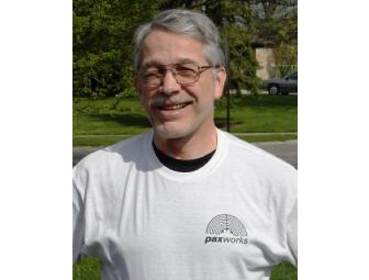 LARGE size. The genuine t shirt worn by the Paxworks crew to keep cool working in the hot sun (or rain) to make outdoor labyrinths.  Has the Paxworks logo on the front and over sized Chartres labyrinth on the back... Material is light 50/50 Gildan blend, chosen for its cooling properties.